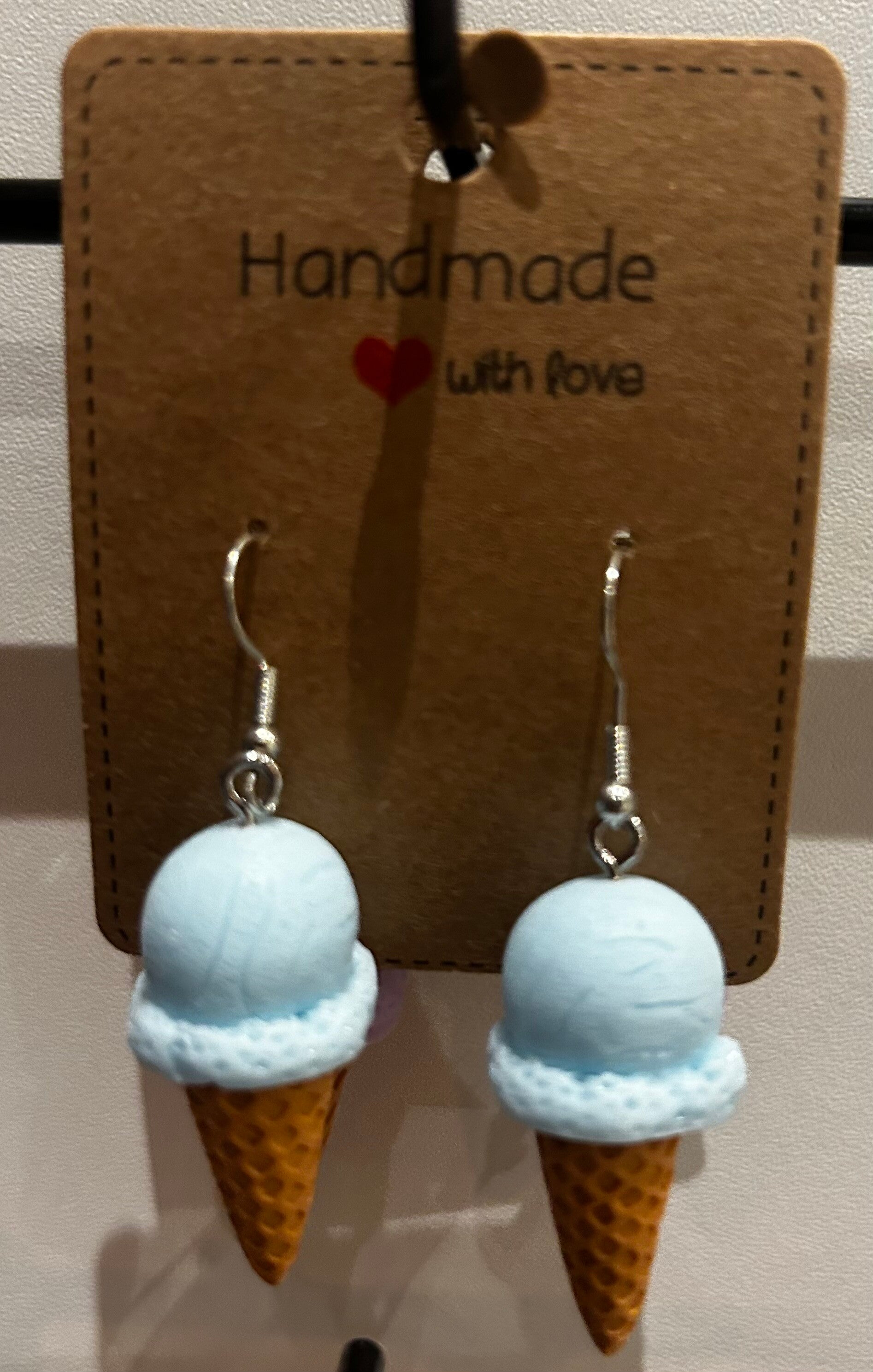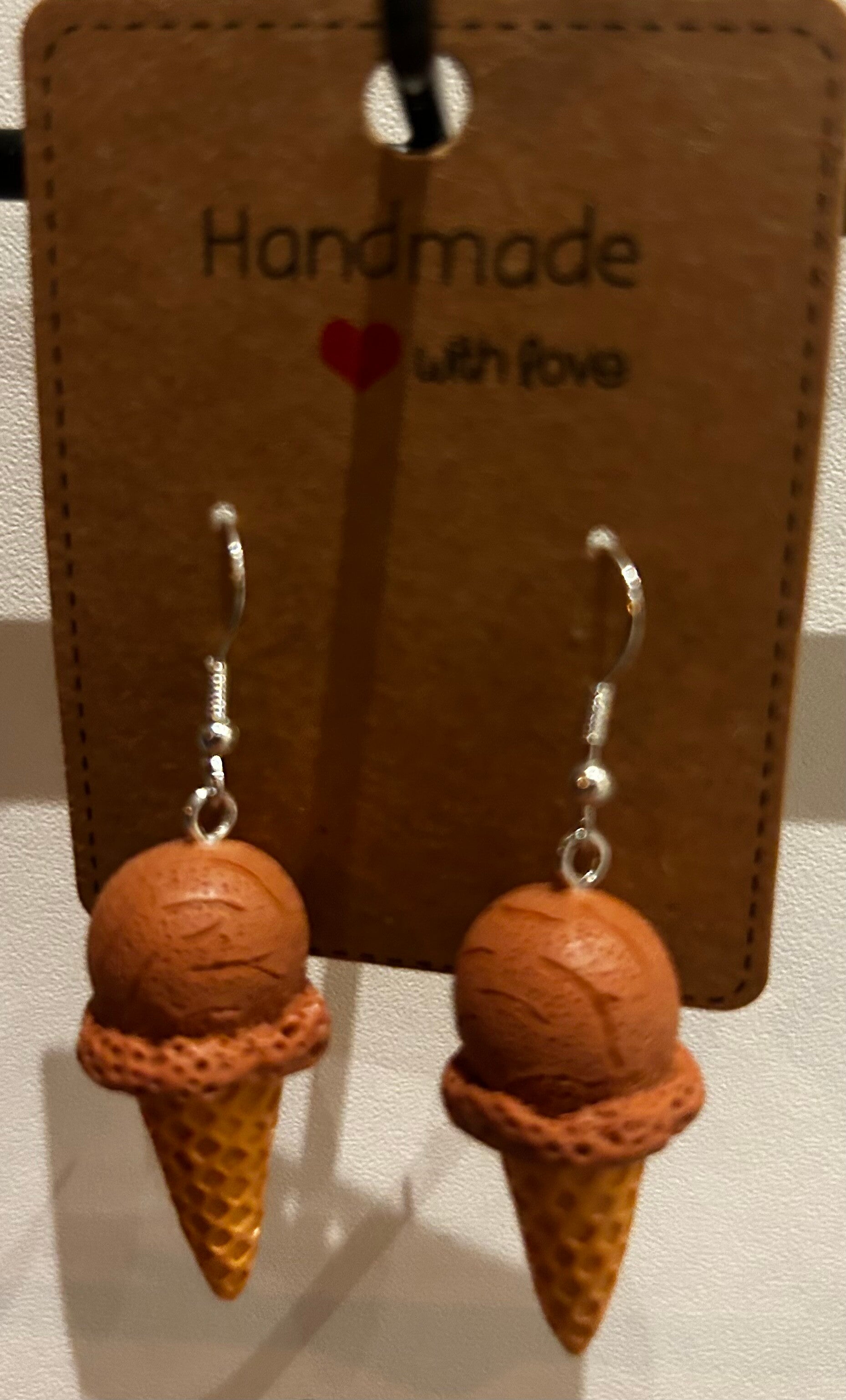 Deze handgemaakte oorbellen in de vorm van ijsjes op een hoorntje zijn speels en vrolijk.